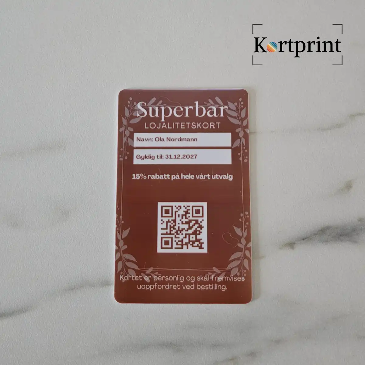 Bruk: Lojalitetsprogram, fordelskort, medlemsbevis, kursbevis, VIP-kort.